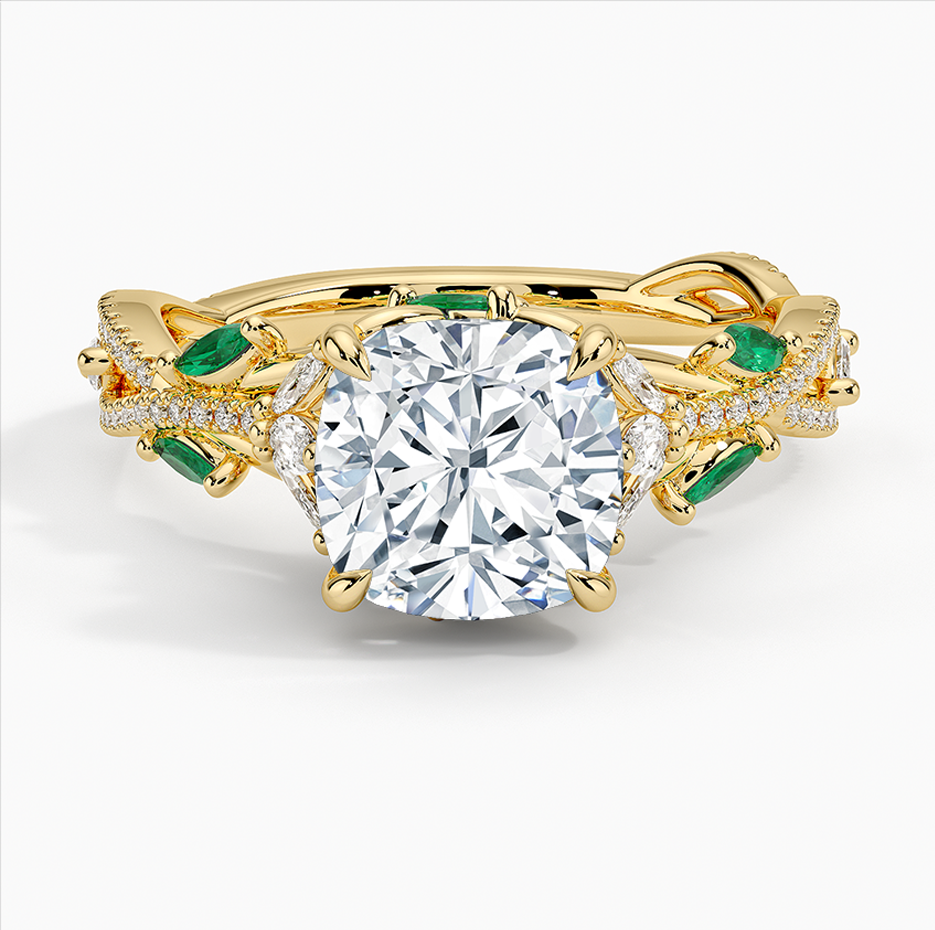 Erwecken Sie Ihre Liebesgeschichte mit unserem atemberaubenden Verlobungsring aus 10-karätigem Gold zum Leben. Er besticht durch einen atemberaubend großen, im Labor gezüchteten Diamanten mit 0,5 bis 3 Karat, elegant eingefasst zwischen schimmernden Seitensteinen, darunter im Labor gezüchtete Diamanten und Smaragde, und einem harmonischen Gesamtgewicht von 0,98 bis 3,48 Karat. Jedes Stück ist sorgfältig gefertigt und besticht durch seine außergewöhnliche Politur, Symmetrie und Schliffqualität – zertifiziert von IGI. Die Diamanten weisen eine exquisite Farbe D mit VVS- bis VS-Reinheit auf und machen diesen Ring zum ultimativen Symbol Ihrer ewigen Verbundenheit.