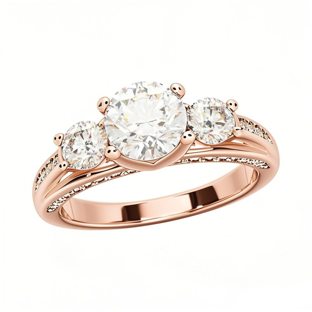 Unser exquisiter Verlobungsring aus 10-Karat-Gold besticht durch einen atemberaubenden, im Labor hergestellten Diamanten im Rundschliff, elegant gefasst in luxuriöses Roségold. Mit individuellen Gravuroptionen und einem außergewöhnlichen Design präsentiert dieser Drei-Stein-Ring einen brillanten Mittelstein mit 1 Karat Gewicht, ergänzt durch Seitensteine mit insgesamt 1 Karat. Damit ist er die perfekte Wahl für die moderne Frau, die Schönheit und Individualität gleichermaßen schätzt.