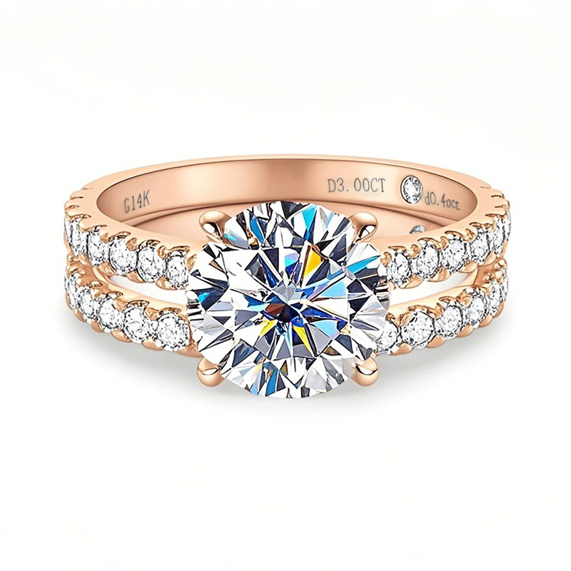 Entdecken Sie das perfekte Symbol der Liebe mit unserem exquisiten Verlobungsring aus 10-karätigem Gold. Er besticht durch einen funkelnden Moissanit-Mittelstein mit einem Gesamtgewicht von 2,5 bis 6 Karat, ergänzt durch atemberaubende Seitensteine von insgesamt 1 Karat. Personalisieren Sie Ihren Ring mit einer individuellen Gravur und schaffen Sie ein einzigartiges und gefühlvolles Schmuckstück. Erhältlich in elegantem Roségold, das perfekt zu jedem Frauenstil passt und ein unvergessliches Brautset ergibt.