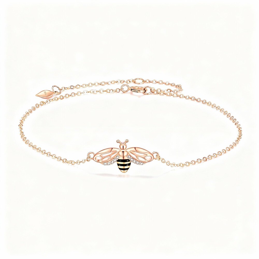 Erleben Sie den Charme unseres 10K Roségold Armbands mit Bienenanhänger, entworfen für Frauen, die Raffinesse und Eleganz lieben.