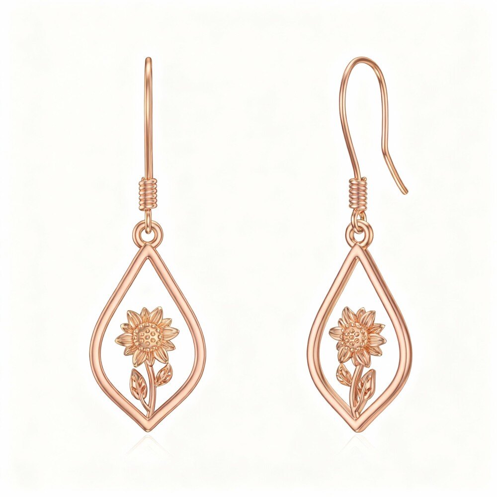Entdecken Sie die Schönheit unserer atemberaubenden 10K Roségold Sonnenblumen Ohrringe, die für die moderne Frau entworfen wurden, die Eleganz und einzigartiges Handwerk schätzt.