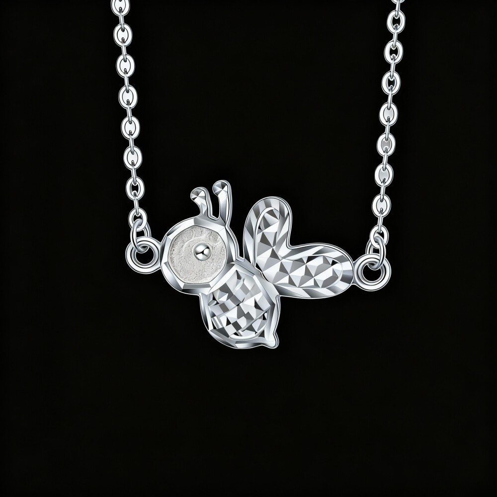 Erleben Sie die Eleganz unserer 10K Weißes Gold Bienen Anhänger Halskette, die für diejenigen entworfen wurde, die anspruchsvolle Schönheit und Einfachheit schätzen.