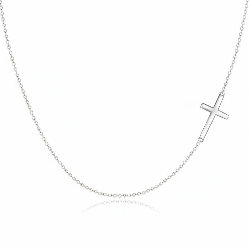 Erleben Sie Raffinesse mit unserer beeindruckenden 10K Weißes Gold Unisex Kreuz Anhänger Halskette, die für einen minimalistischen, aber auffälligen Look entworfen wurde.