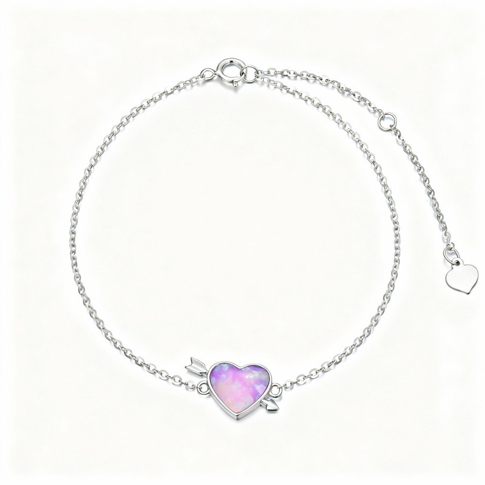 Entdecken Sie die Eleganz und das zeitlose Design unseres 10K Weißes Goldarmbands mit einem wunderschönen herzförmigen Opal für die moderne Frau.