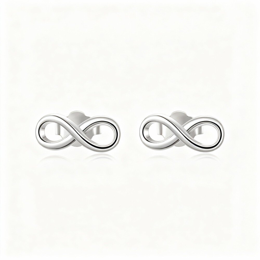 Erleben Sie den Reiz unserer 10K Weißes Gold Ohrstecker mit Unendlichkeitssymbol, das ewige Liebe und unendliche Möglichkeiten repräsentiert, perfekt für jede Frau.