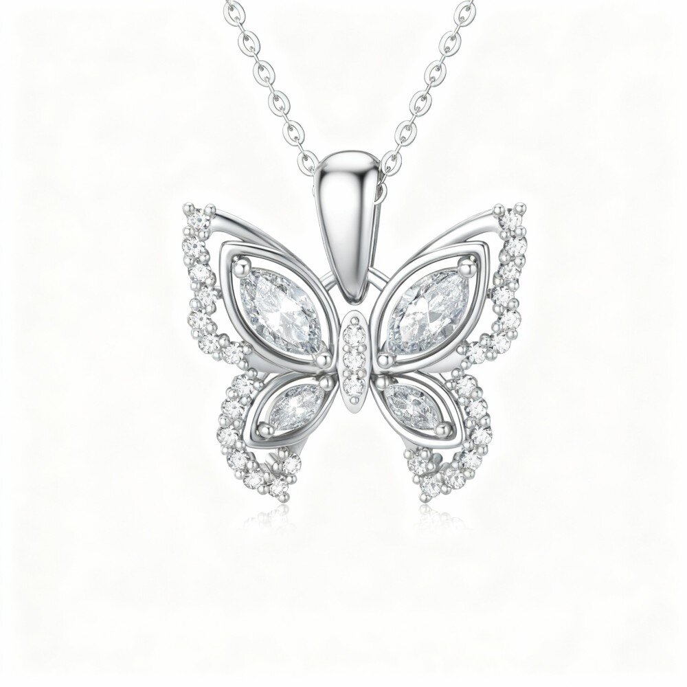 Entdecken Sie die Schönheit unserer 10K Weißes Gold Schmetterlingsanhänger Halskette, die für Frauen entworfen wurde, die Eleganz und Luxus lieben.