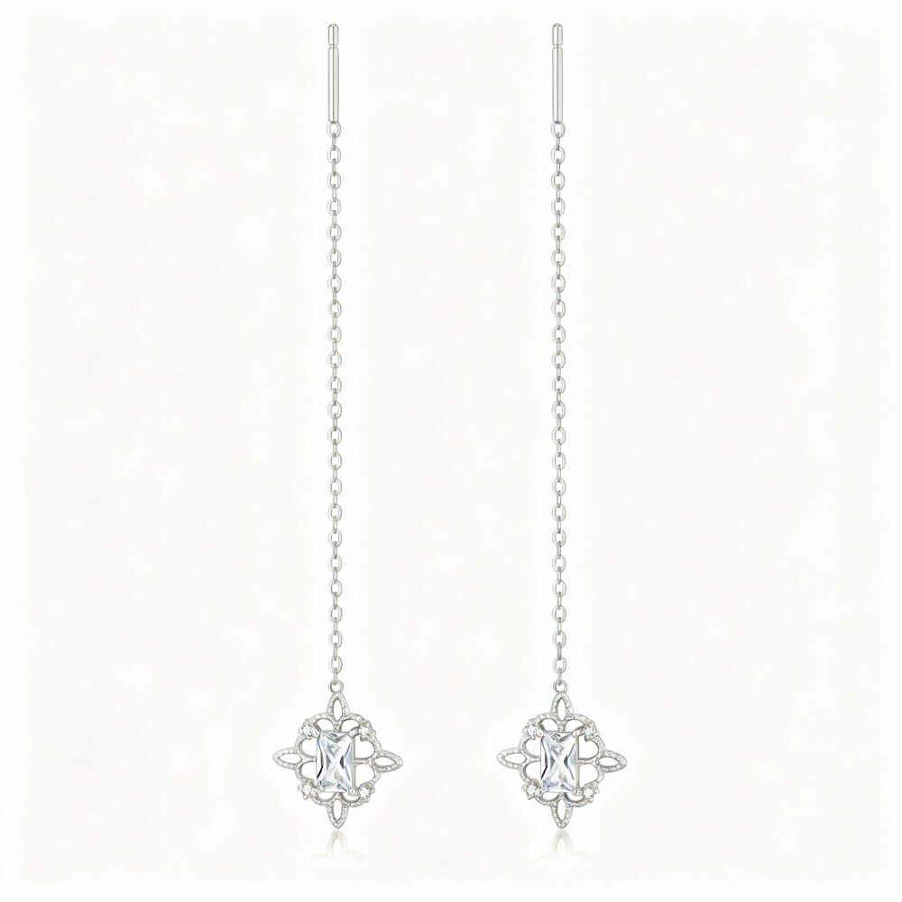 Diese exquisiten Ohrhänger verkörpern die perfekte Mischung aus zeitloser Eleganz und moderner Raffinesse. Hergestellt aus hochwertigem 10K Weißes Gold, präsentieren sie filigrane keltische Knotendesigns, die Einheit und Ewigkeit symbolisieren. Die atemberaubenden quadratischen Zirkonia-Steine sind sorgfältig gefasst, um einen strahlenden Glanz zu bieten, wodurch sie ein auffälliges Accessoire für jeden Anlass sind. Egal, ob Sie sich für ein besonderes Ereignis kleiden oder Ihrem Alltagslook einen Hauch von Glamour verleihen möchten, diese Ohrhänger sind darauf ausgelegt, Ihren Stil zu heben. Ideal für Frauen, die feinen Schmuck schätzen, bieten sie Vielseitigkeit und Charme, die mit verschiedenen Outfits kombiniert werden können. Erhöhen Sie Ihre Schmucksammlung mit diesen wunderschönen Ohrhängern, die sowohl Tradition als auch modernes Design feiern.