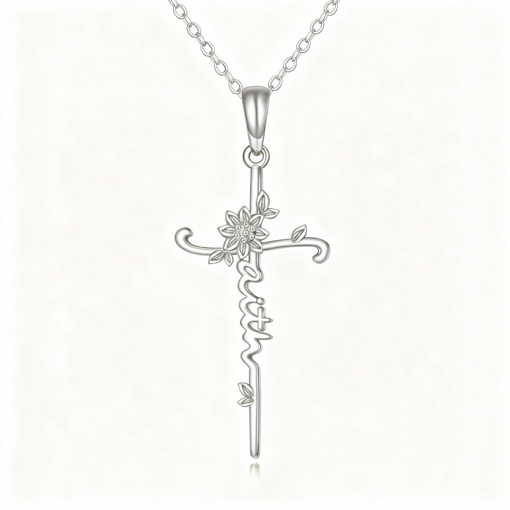 Entdecken Sie unsere exquisite 10K Weißes Gold Anhängerkette, eine perfekte Kombination aus Glauben und floraler Schönheit.