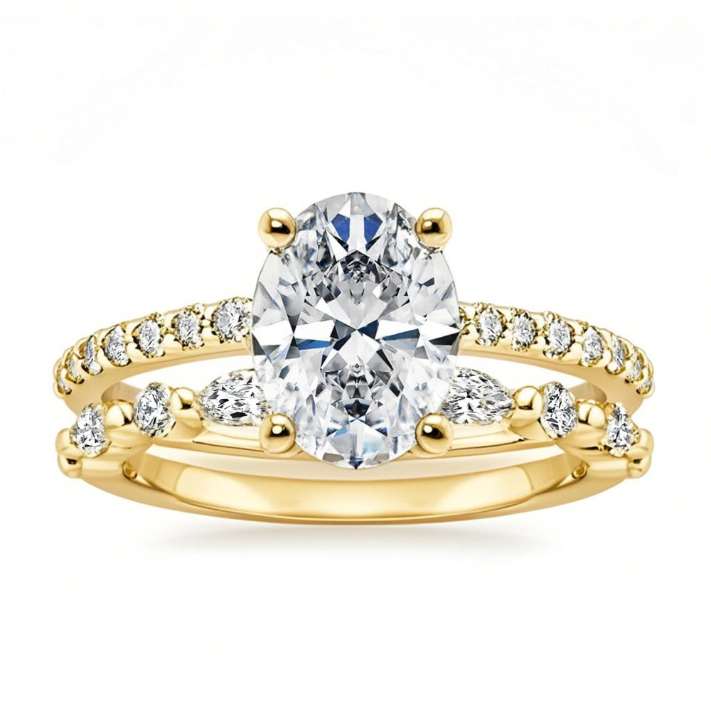 Unser Brautset besticht durch außergewöhnliche Handwerkskunst, brillante Politur, exzellenten Schliff und perfekte Symmetrie, die es aus jedem Blickwinkel erstrahlen lässt. Gefertigt aus hochwertigem 14-karätigem Gold ist dieses Set nicht nur auf Langlebigkeit ausgelegt, sondern strahlt auch zeitlosen Charme aus, der Trends überdauert. Der atemberaubende Moissanit-Mittelstein besticht durch sein bemerkenswertes Funkeln und seine Klarheit und bildet einen perfekten Blickfang, der Ihre ewige Verbundenheit symbolisiert. Jeder Ring dieses exquisiten Sets bietet Komfort und Stil und eignet sich perfekt für besondere Anlässe und den Alltag. Wählen Sie dieses Brautset als wertvolles Symbol Ihrer einzigartigen Liebesgeschichte.