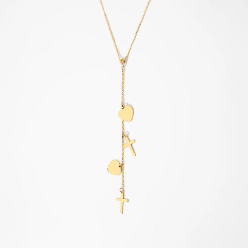 Gefertigt aus hochwertigem 18K Gold, vereint diese verstellbare Y-Kette Langlebigkeit mit einem leichten Tragegefühl für ganztägigen Komfort. Die Anhänger in Form von Kreuz und Herz symbolisieren Liebe und Glauben und machen sie zu einem tief bedeutungsvollen Geschenk für Sie selbst oder einen geliebten Menschen. Ihr vielseitiges Design ergänzt mühelos jedes Outfit, von lässigen Tops bis zu Abendkleidern, und ermöglicht es Ihnen, Ihre Individualität bei jeder Gelegenheit auszudrücken. Mit verstellbarer Länge gewährleistet sie eine perfekte Passform für jeden Ausschnitt und bietet Stil und Anpassungsfähigkeit. Jedes Stück spiegelt unser Engagement für hervorragende Handwerkskunst und zeitlose Schönheit wider und sorgt dafür, dass Sie mit Stil überall glänzen. Diese Kette ist mehr als ein Accessoire: Sie ist eine Aussage von Anmut und persönlichem Ausdruck, ideal für diejenigen, die Qualität und Symbolik in ihrer Schmucksammlung suchen.