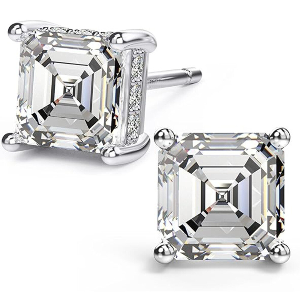 Entdecken Sie unsere luxuriösen Stecker mit Asscher-Schliff Moissanit in 18K Weißgold, geschaffen für dauerhafte Brillanz und anspruchsvollen Stil. Diese ethisch gewonnenen Edelsteine bieten außergewöhnliches Feuer und Haltbarkeit.