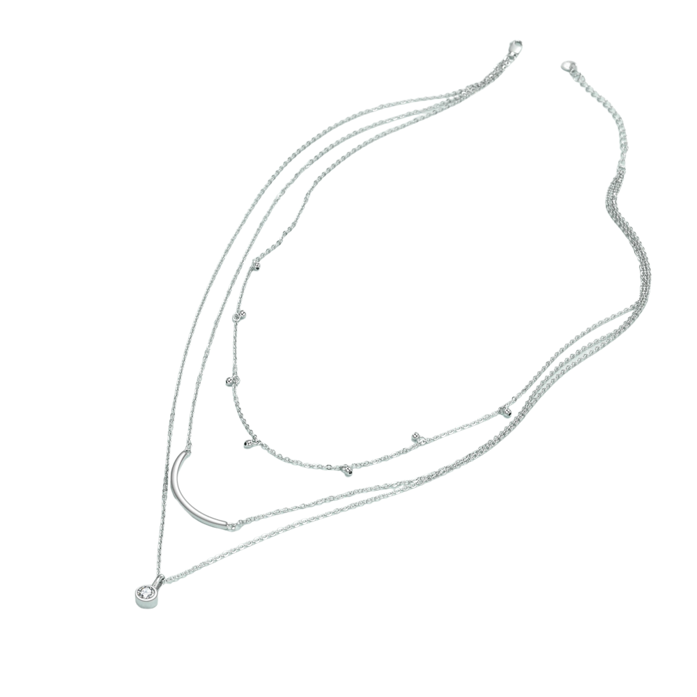 Erhöhen Sie Ihren Stil mit unserer exquisiten mehrlagigen Halskette, die sorgfältig aus Sterlingsilber gefertigt und mit funkelnden Zirkonia verziert ist. Sie wurde speziell für Frauen entworfen, die zeitlose Eleganz und moderne Raffinesse schätzen.