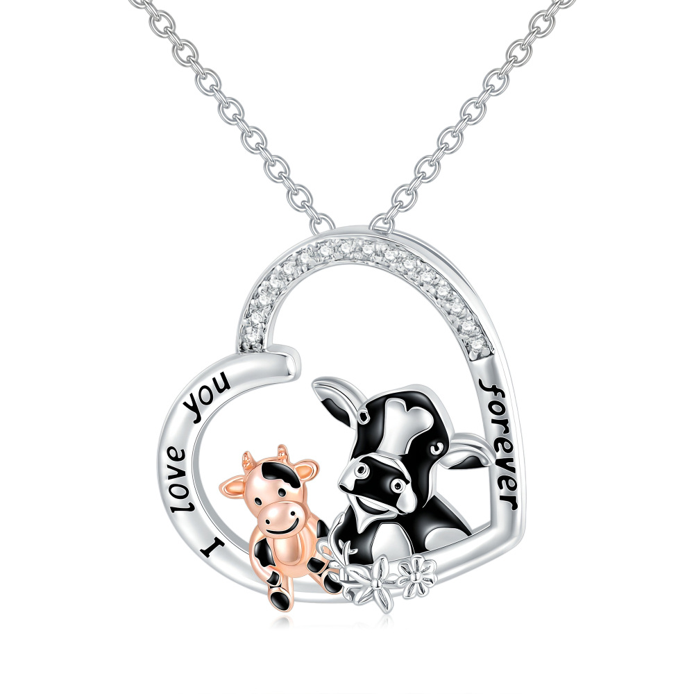 Entdecken Sie die bezaubernde Eleganz unserer Anhänger-Halskette aus Sterlingsilber, die eine einzigartige Kombination aus einer kreisförmigen, mit Zirkonia verzierten Form, einem charmanten Kuh-Motiv und einem Herz mit der Aufschrift „I Love You Forever“ in atemberaubenden Silber- und Roségoldtönen bietet und speziell für Frauen entworfen wurde, die exquisite Handwerkskunst zu schätzen wissen.